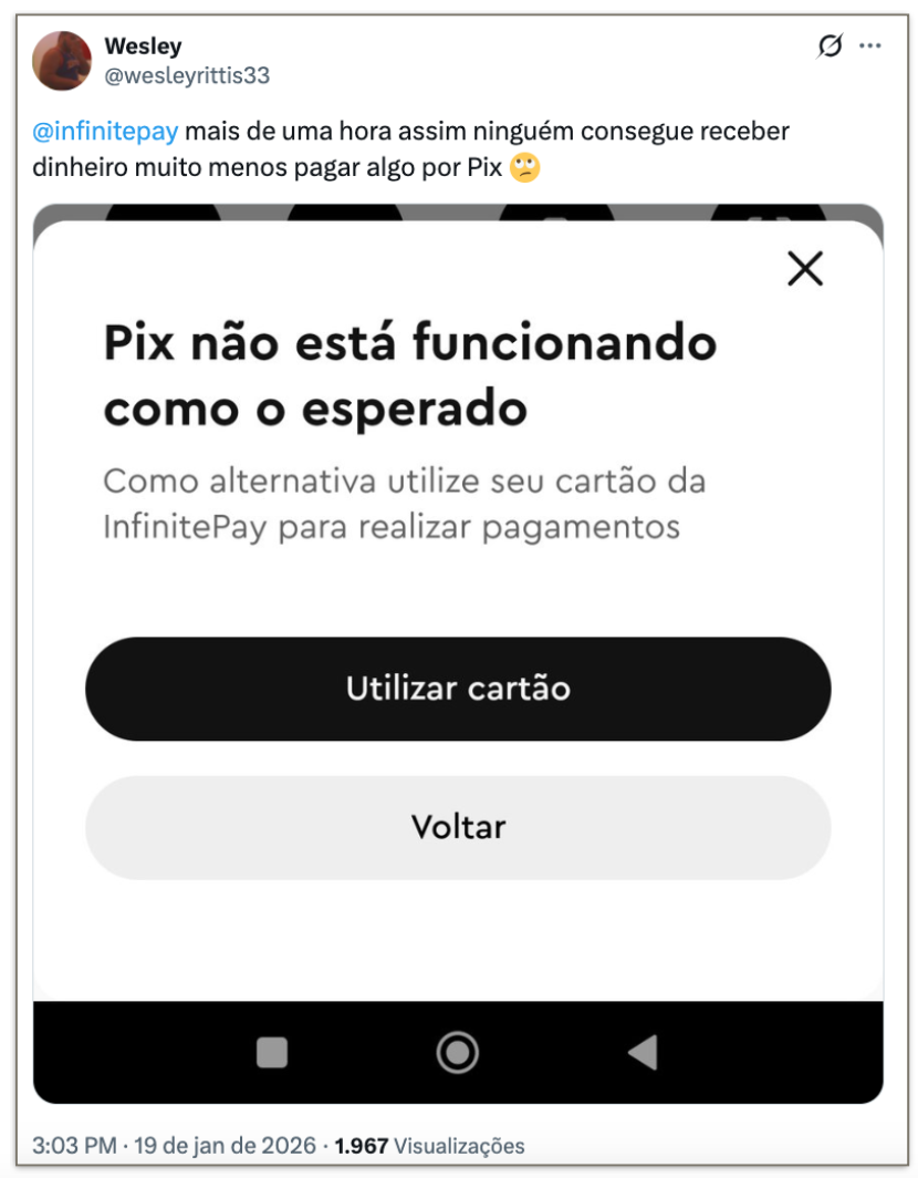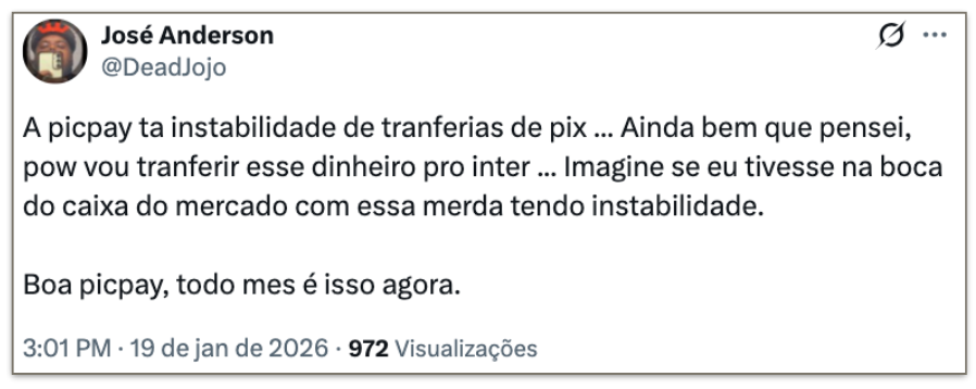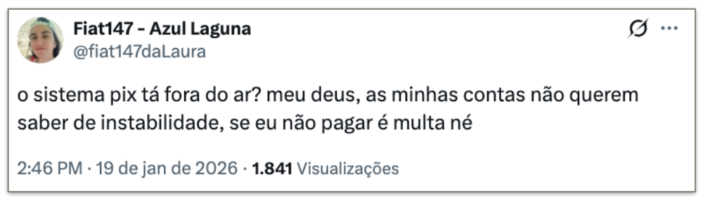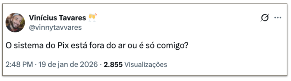 В этот понедельник (19 января 2026 г.) платежная система Pix продемонстрировала нестабильность и затронула клиентов нескольких банков страны. Пользователи в социальных сетях сообщили о трудностях с осуществлением переводов и платежей в течение дня.