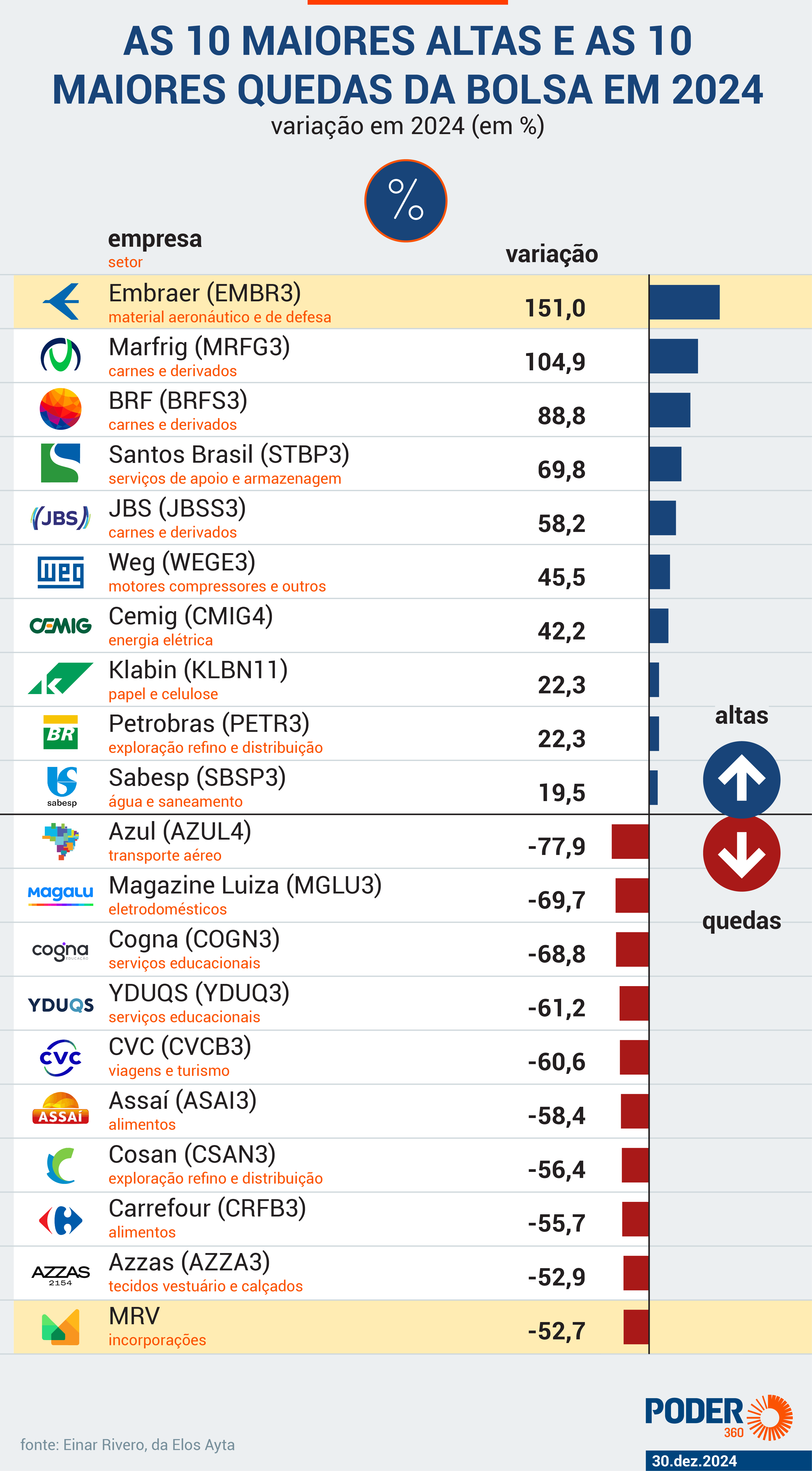 Прочтите основные моменты Ибовеспы в 2024 году в инфографике ниже: