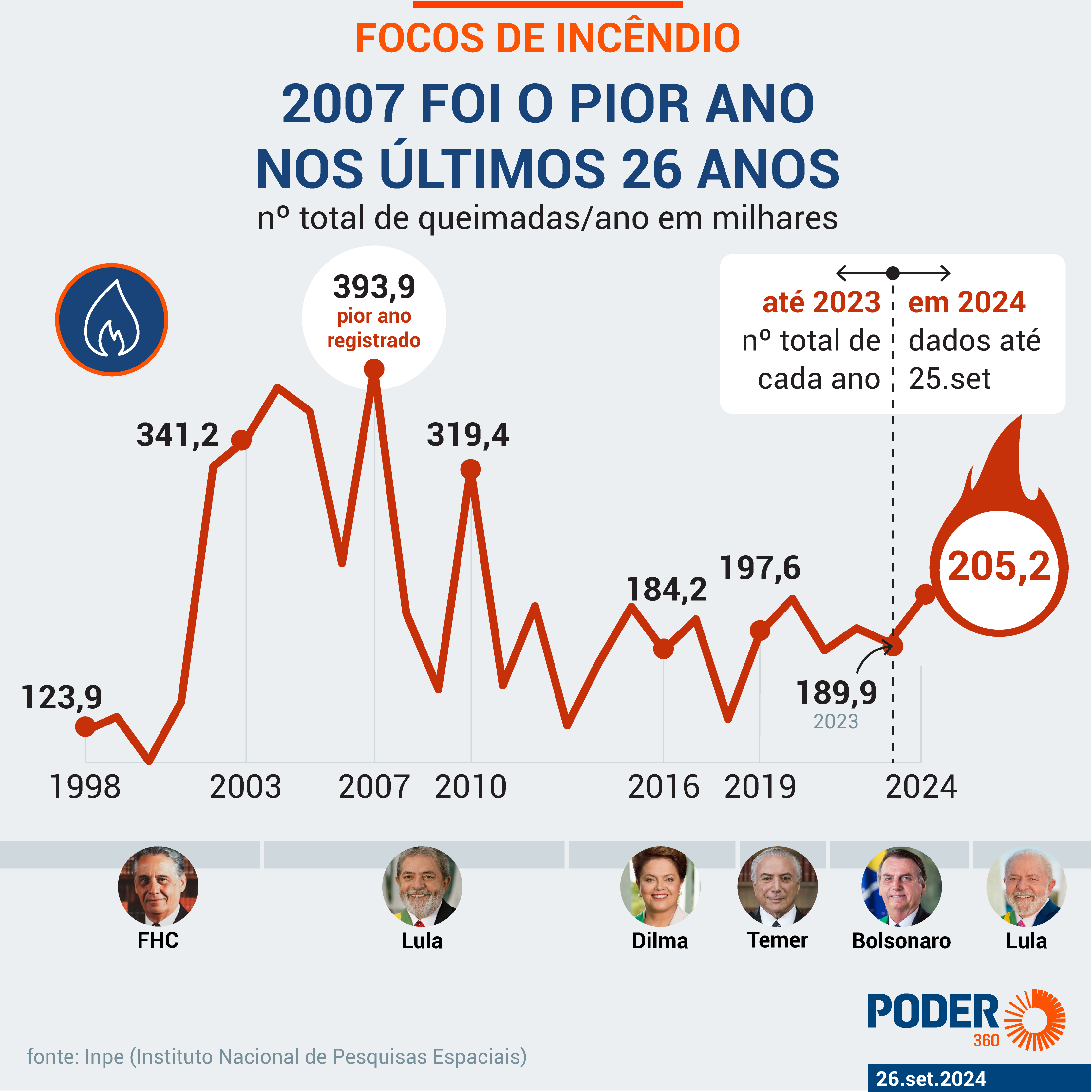 По данным Cemaden (Национального центра мониторинга и оповещения о стихийных бедствиях), связанного с MCTI (Министерством науки и технологий), страна переживает, помимо увеличения количества вспышек пожаров, историческую засуху, самую сильную за 44 года. .