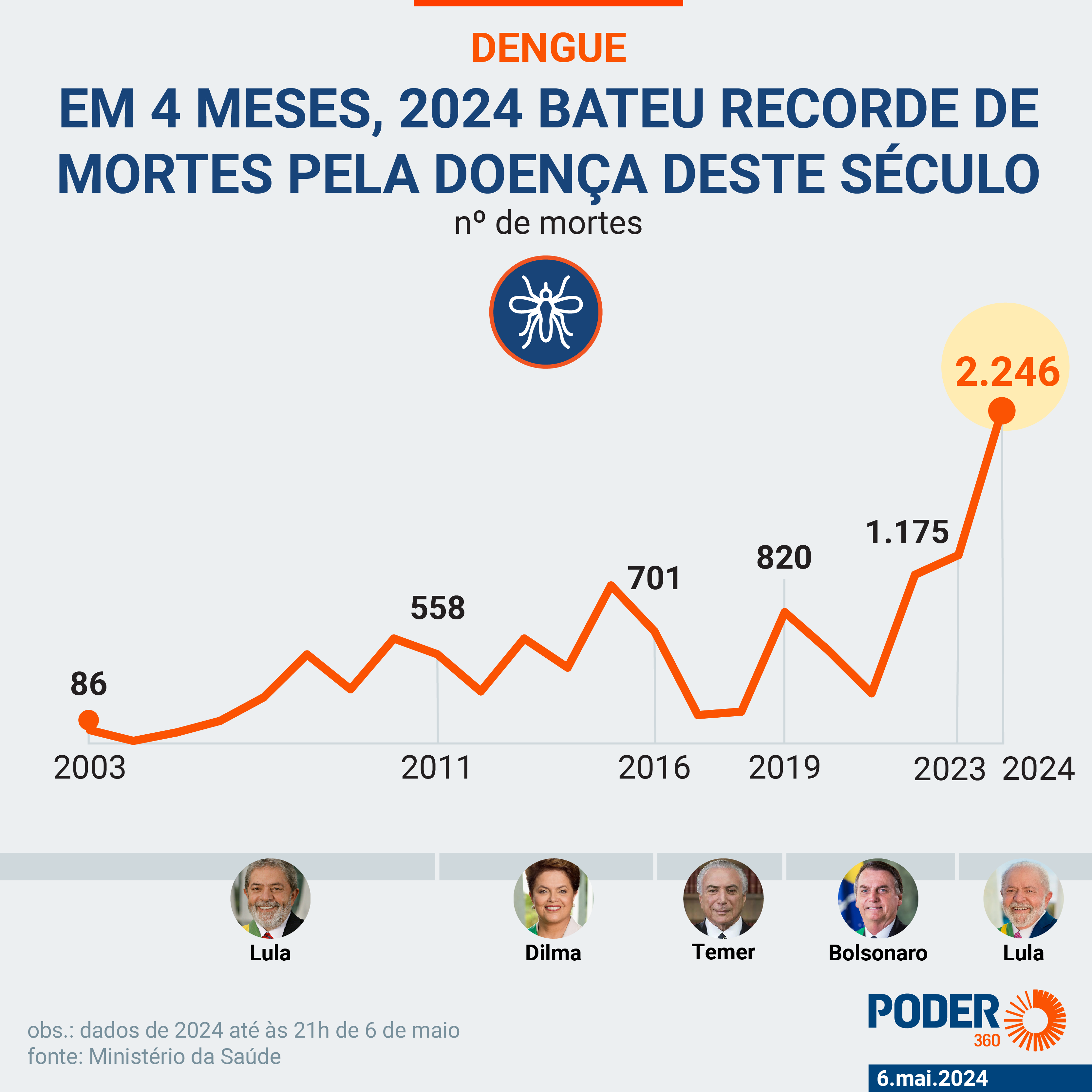 В этот понедельник (6 мая, 204) в Бразилии зарегистрировано в общей сложности 4 453 3786 вероятных случаев лихорадки денге. По данным ведомства, с пятницы (3 мая) зарегистрировано 182 752 новых случая заражения. Министерство здравоохранения. Номера не обновляются по выходным.