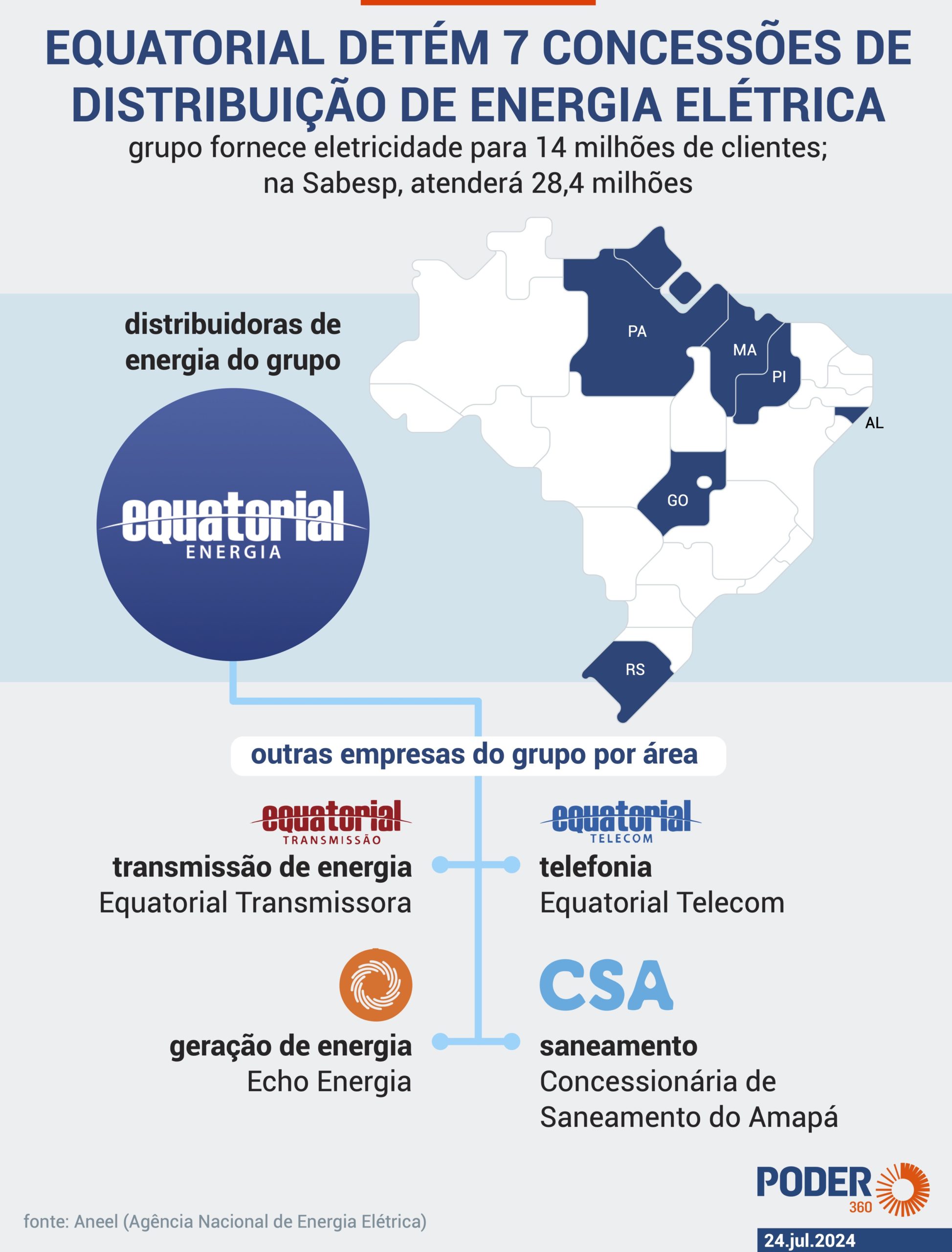 «Экваториал», ставшая опорным акционером Сабесп (Companhia de Saneamento Básico do Estado de São Paulo), владеет 3 из 5 распределительных компаний Бразилии с самым низким рейтингом. Группа приобрела 15% акций компании из Сан-Паулу за 6,9 млрд реалов в ходе процесса приватизации, завершившегося во вторник (23 июля 2024 г.).