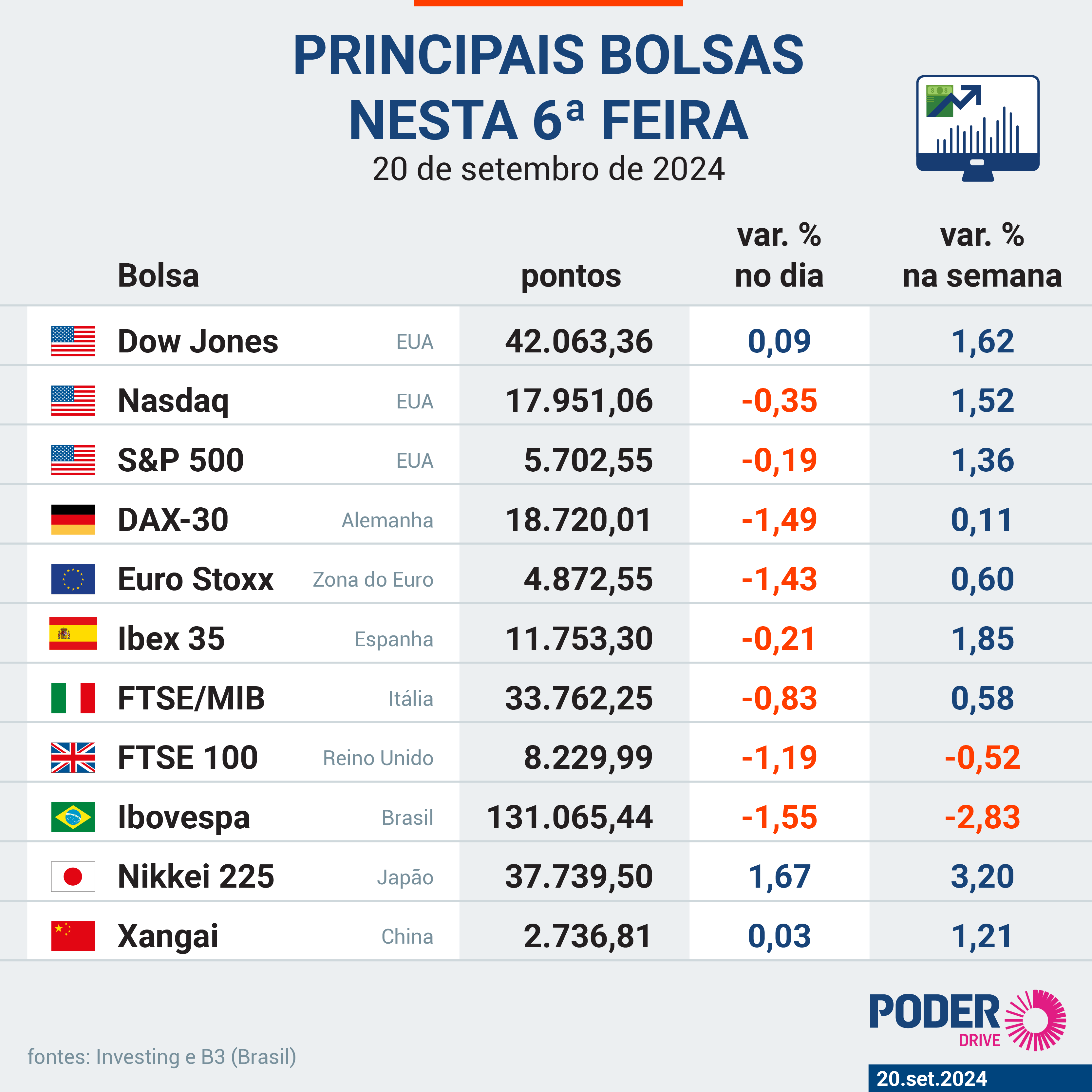 Это изменение отражено на фондовых биржах. В течение недели закрылись только B3 (Фондовая биржа Сан-Паулу) и FTSE 100 (Великобритания).