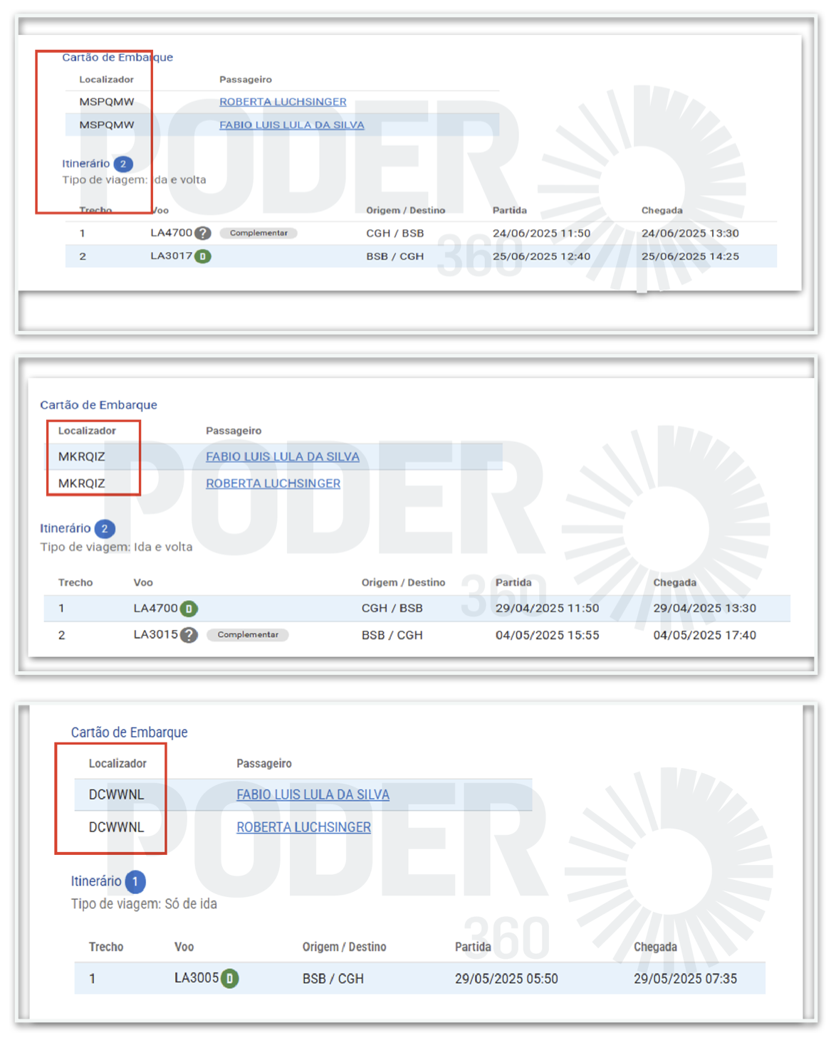ТО RichWeNews это также показало, что в разговорах между Робертой и Карекой из INSS упоминается Лулинья. В одном из таких разговоров она, похоже, обеспокоена конфискацией конверта с билетами на концерт. Заметка в дневнике содержит прямую ссылку «Фабио (сын Лула)» наряду с информацией о полномочиях для доступа к ложе на мероприятии в Бразилиа. Событие и дата не указаны.