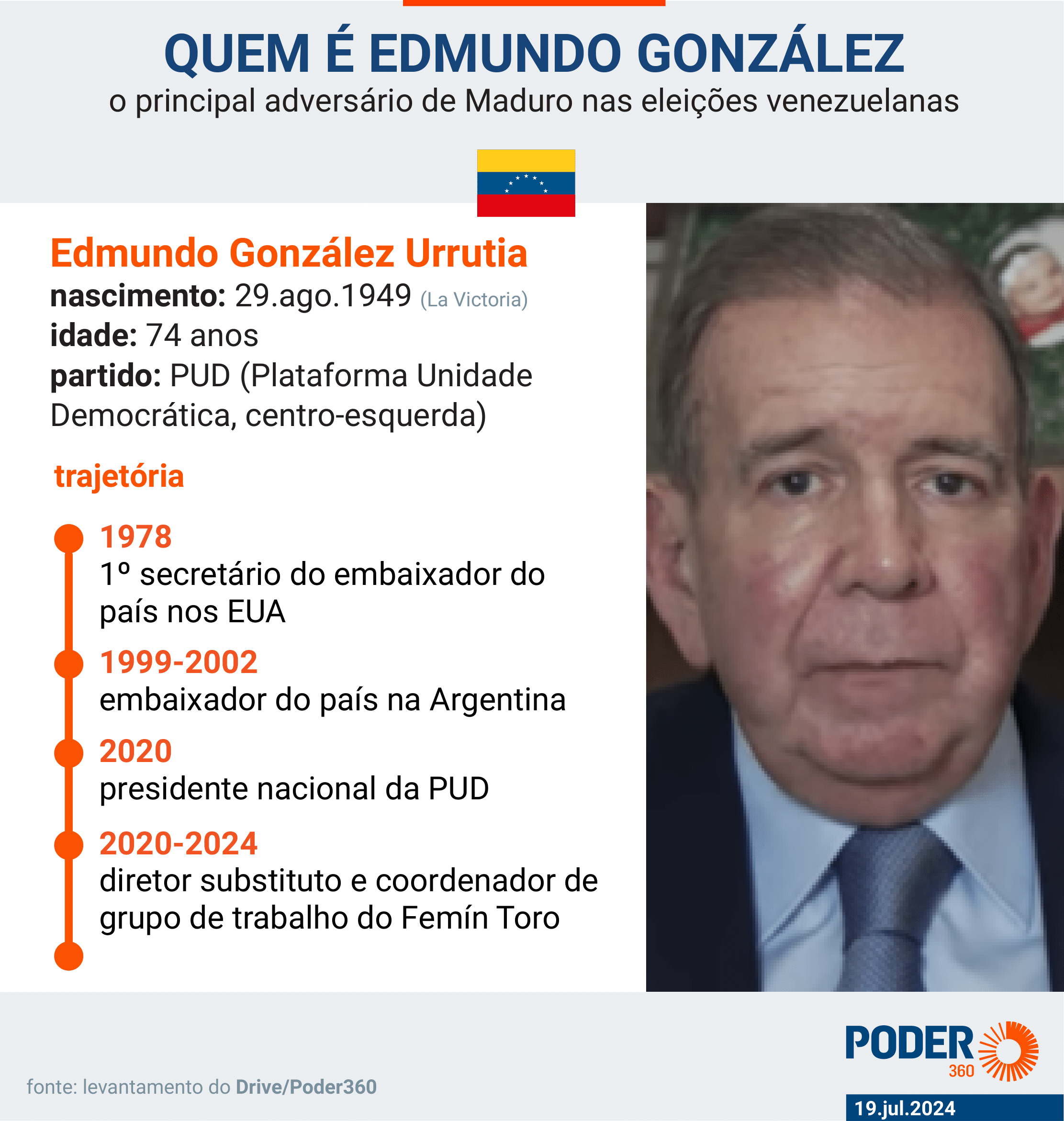Основными кандидатами на воскресных выборах (28 июля) являются Николас Мадуро и Эдмундо Гонсалес Уррутиа (Демократическая унитарная платформа, в центре), которые представляют коалицию, сформированную 11 левоцентристскими и правоцентристскими партиями, оппозиционными президенту Венесуэлы.
