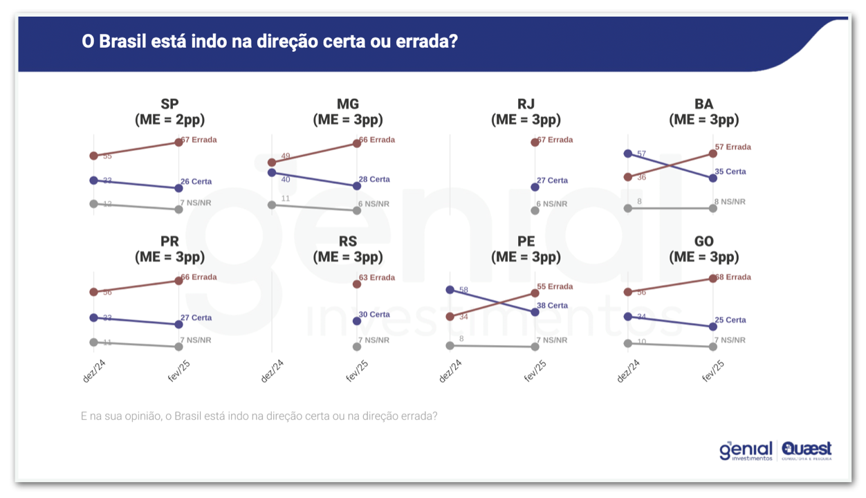 Большинство респондентов из всех штатов сказали, что Бразилия идет в неправильном направлении. «Без определенного направления правительство передает отсутствие безопасности населениюСказал Нунес.