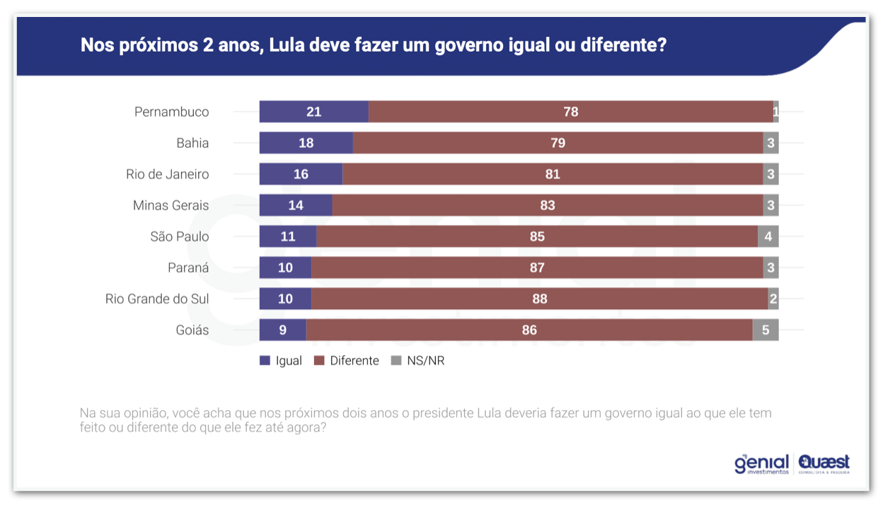 Это был первый раз, когда Quaest включает в себя Рио -де -Жанейро и Рио -Гранди -Ду Сул в опросе оценки администрации Лулы. В других 6 штатах можно сравнить с предыдущими исследованиями.