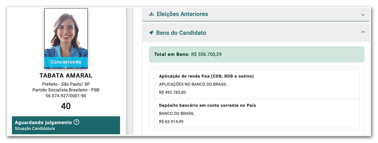 Депутат и кандидат на пост мэра Сан-Паулу от PSB Табата Амарал заявила Избирательному суду, что у нее есть активы на сумму 556 700,29 реалов – та же стоимость, зарегистрированная в TSE (Высший избирательный суд) в 2022 году, когда она баллотировалась и была избран в Палату депутатов. К УОЛПредвыборный штаб конгрессменки заявил, что повторение было ошибкой и что исправление будет сделано.